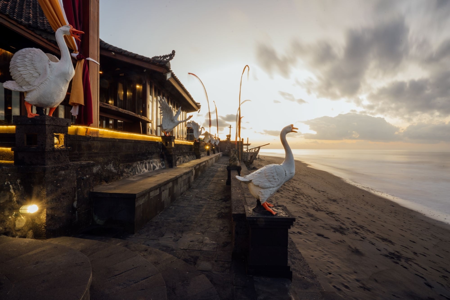 There are a total of 94 rooms, spread across 24 villas and 7 deluxe rooms. This four-star resort is located on the shores of Keramas Beach in Gianyar, Bali.