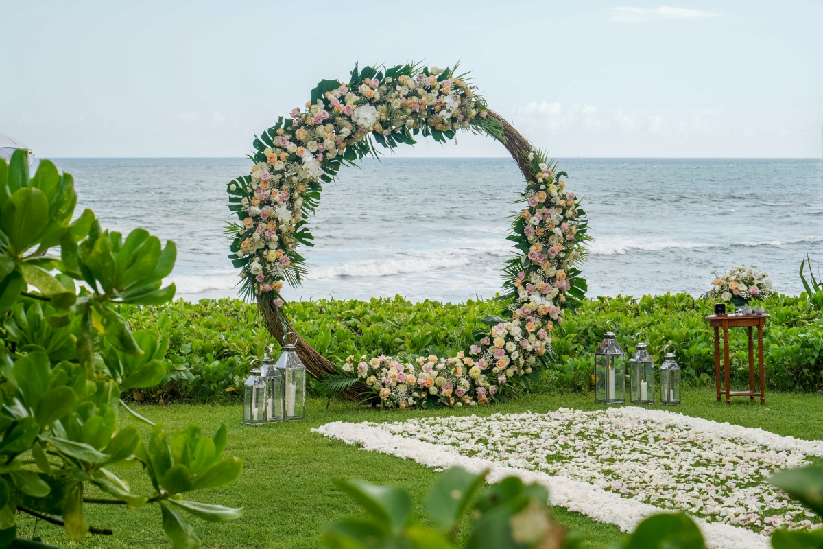 This resort is a new luxury boutique resort that comes right to the edge of a beautiful black-sand beach with wide views of the Indian Ocean and the neighboring island of Nusa Penida, broad rice fields and the holy volcano Mount Agung. With its beautiful beachfront garden and amazing background of Indian Ocean, Komaneka Keramas offers perfect venue for wedding.