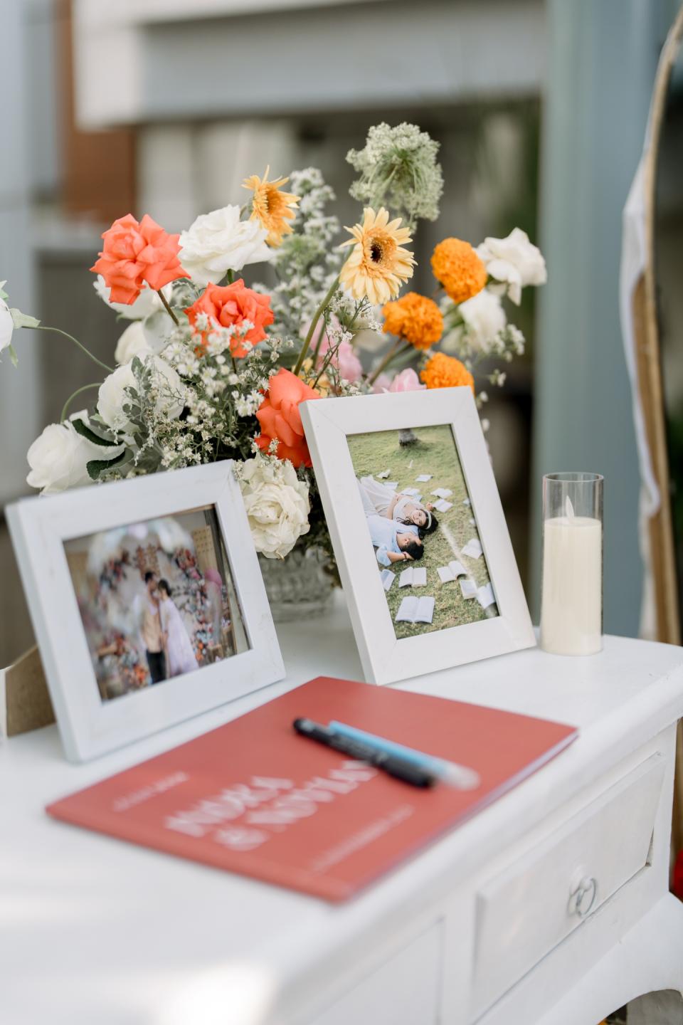- Reception decoration includes: fairy light/light bulb, bridal table set up for 6 pax, guest centerpieces, welcome board, guest book, registration desk, angpao box