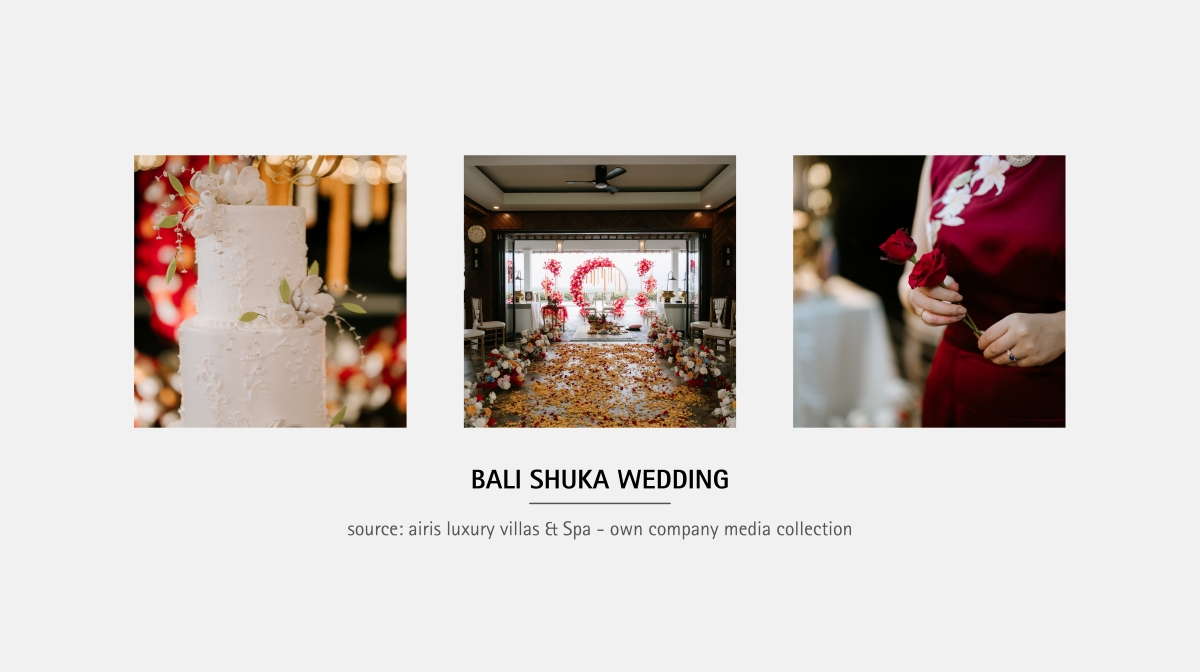 Let Bali Shuka Wedding turn your mood board into reality. As Bali’s premier modern wedding planners, they know Airis Luxury Villas & Spa like the back of their hand. From securing the best deals to ensuring every petal is perfectly placed, Bali Shuka Wedding curates stress-free, deeply personalised celebrations. You show up, look breathtaking, and say, "I do."