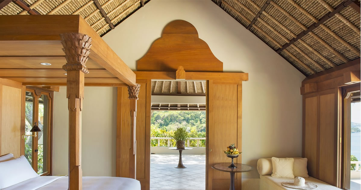 Overlooking the beach and Amuk Bay, the 660-square-metre (7,104 square feet) two-bedroom Amankila Suite offers a private butler service, large terrace and aquamarine-tiled pool