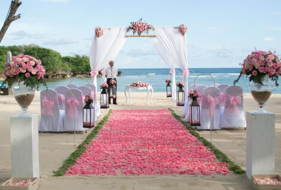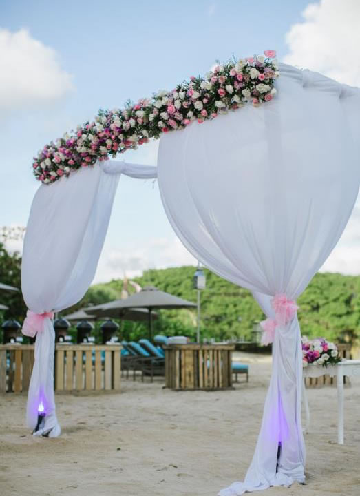 Your wedding set up can be arrange on the beach club, it is about 3 minutes drive from the Courtyard Nusa Dua, a shuttle services is provide by Courtyard, and our wedding team will coordinate all the arrangement. Beach wedding at Courtyard is conveniently arranged for max 60 people
