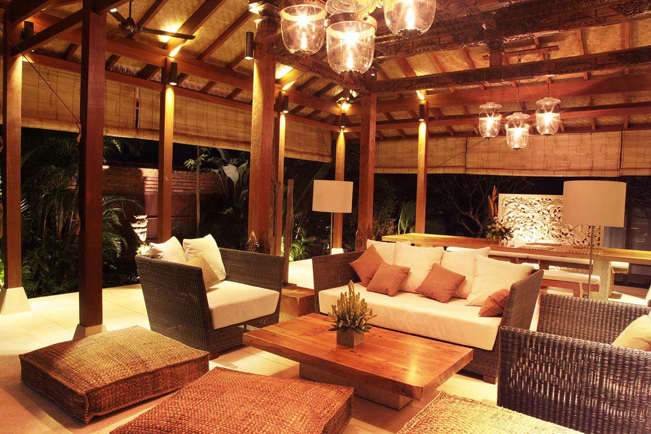 Living areas: All villas have indoor and outdoor sitting areas, dining areas and equipped kitchens or kitchenettes. The larger villas also feature TV rooms fitted with state-of-the-art audi-visual equiment. Bedroom: 24 people (2 x 4-bedroom; 1 x 3-bedroom; 1 x 1-bedroom villas. Entertainment: Satellite-channel TVs, DVD players and iPod docks in all bedrooms. Larger TV screens and pianos available in Villa Dewi Sri and Sarasvati’s TV rooms. Families equipment such children’s playground with swings, slides, sandpit and Wendy house. Sports: swimming pool, air-conditioned gym; and unlimited WiFi and the flawless service of its team of staff.