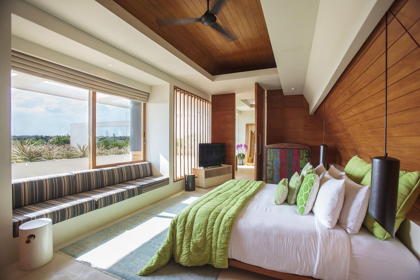 The Iman Villa is located in Pererenan Village, Bali. The design of The Iman Villa is minimalist in style yet it has spacious open space and endless views from every room. From this villa, you will get warm views of local farmers that works in the fields in the early morning, and in the evening, you can see panoramic sunsets from the expansive rooftop terrace.