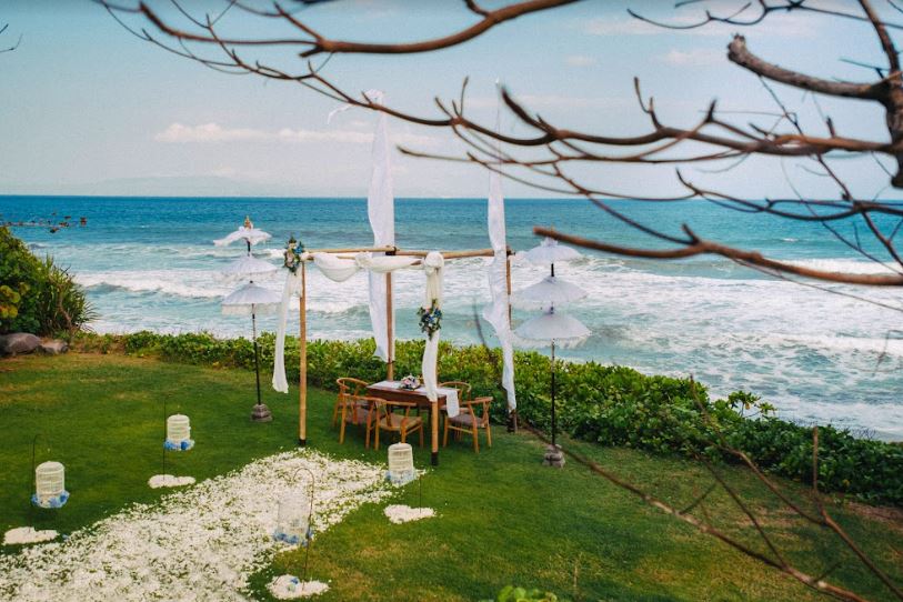 This resort is a new luxury boutique resort that comes right to the edge of a beautiful black-sand beach with wide views of the Indian Ocean and the neighboring island of Nusa Penida, broad rice fields and the holy volcano Mount Agung. With its beautiful beachfront garden and amazing background of Indian Ocean, Komaneka Keramas offers perfect venue for wedding.