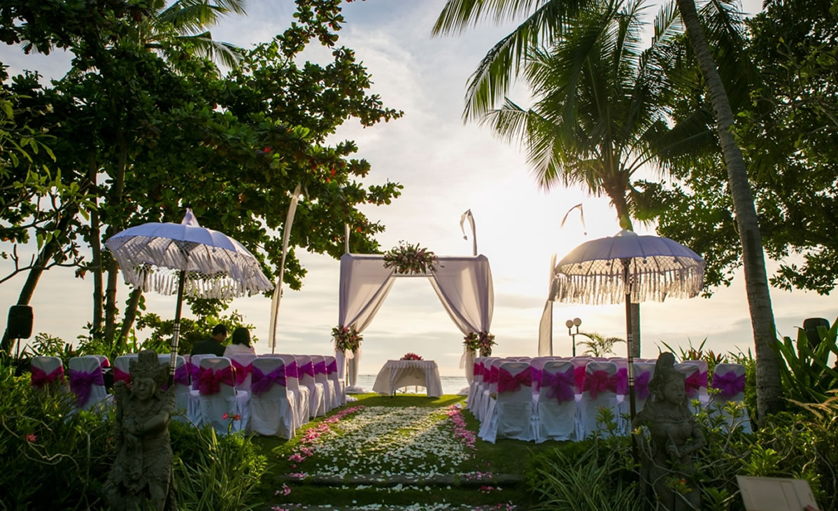 Patrajasa located in south kuta next to Ngurah Rai International Airport.Patrajasa offer spacious garden for wedding function or any function .Stunning sea view and sunset can be viewed from the Garden during good weather .Arif and Amel choose this place for their marriage solemniaztion on 1st june 2016 ,the ceremony was Christian,attended by around 80 guest .The dinner reception held around the pool .this dinner area is provided with a permanent stage.The stage size around 4x 6 m with Balinese gate and oranament .The couple love Indonesian food caterred by Patrajasa.