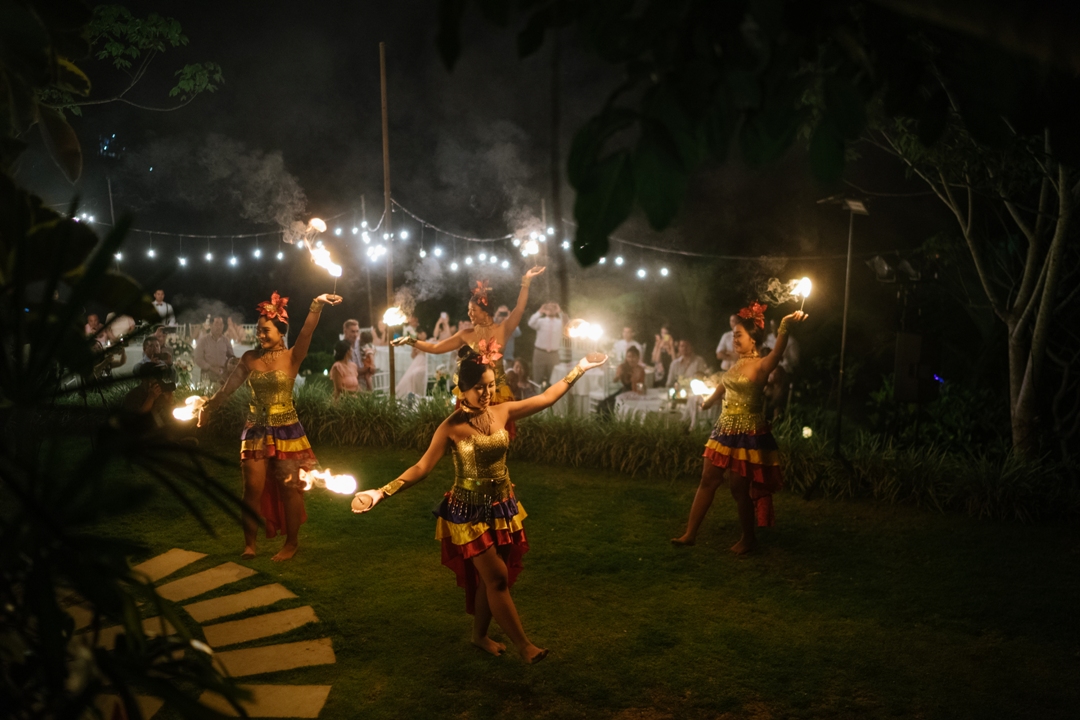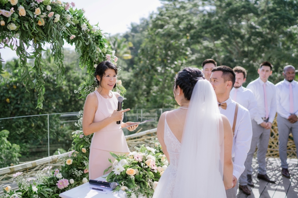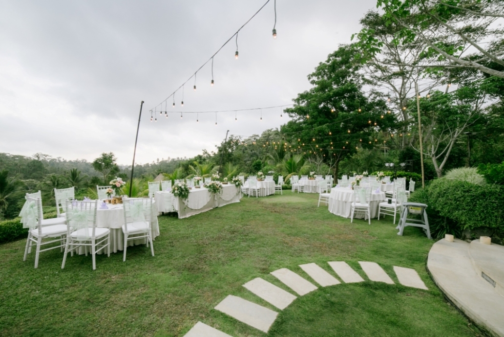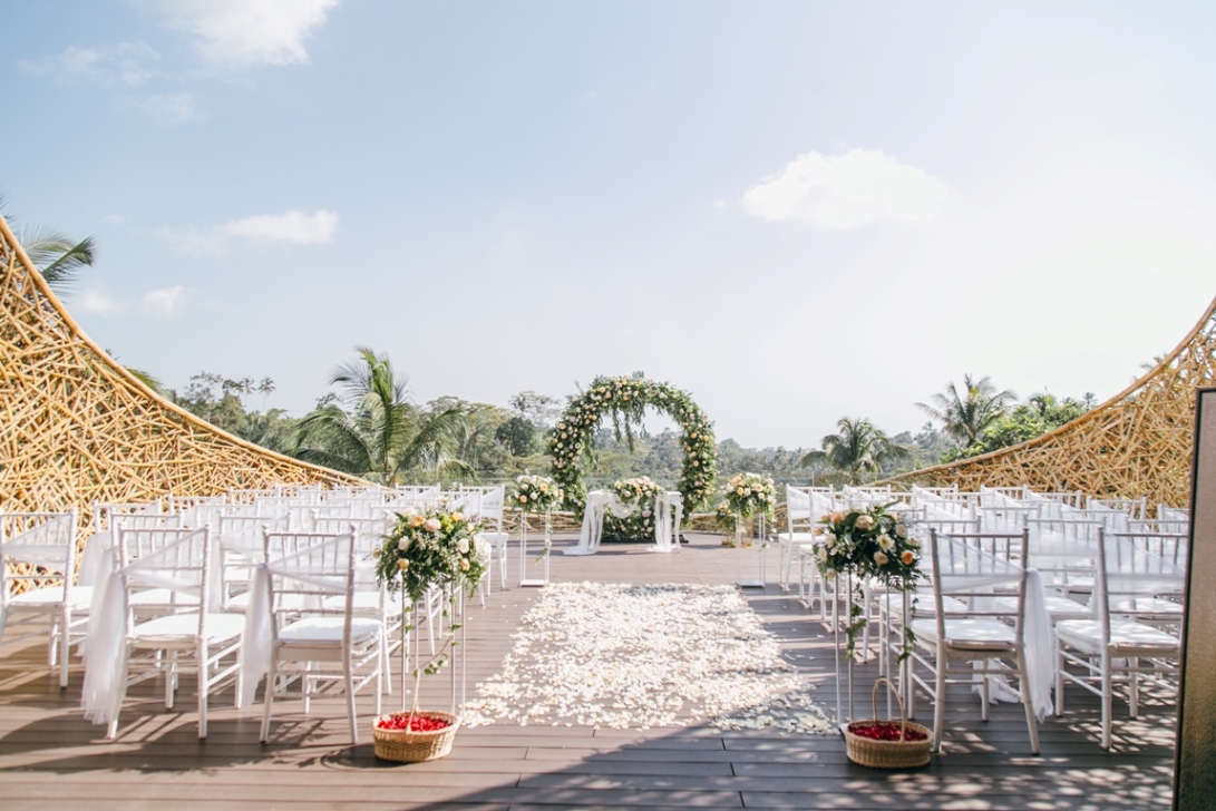 Ubud provides perfect venues for jungle wedding setting. Our sweet couple, Brian & Sarah held their commitment wedding at Bamboo Nest, Padma Ubud. From atop the Bamboo Nest, you can see many lush green trees and the seemingly never-ending river valley. The wedding reception can be held in the Bamboo Nest or the Pool Lawn. For their reception, Brian & Sarah chose to hold theirs at the Pool Lawn.