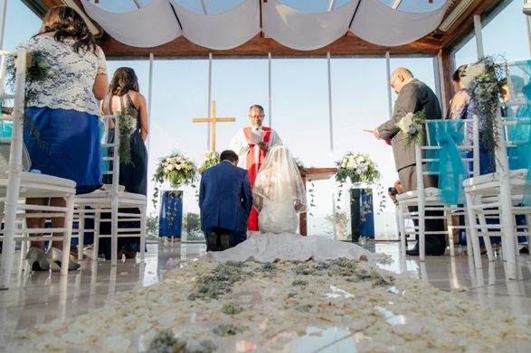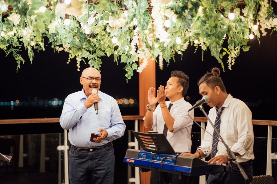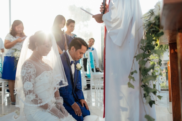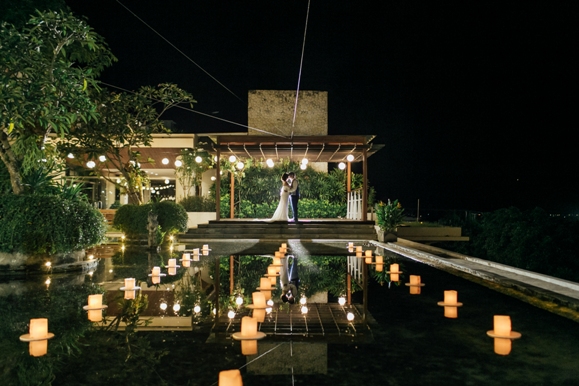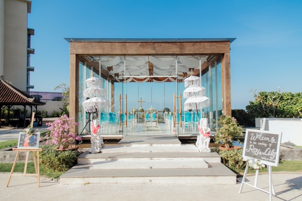 7 April 2019 will forever be the unforgettable day for the lovely couple, Lily and Roy. Ungasan Bay View was the chosen venue to hold their wedding. The chapel was decorated with blue and white theme by Bali Vintage Florist. This chapel can accommodate for up to 50 people. The wedding dinner reception was held in the small garden that offered intimate and romantic wedding dinner. Near the garden, there is small pond that was decorated with floating banana trunk with candle inside.