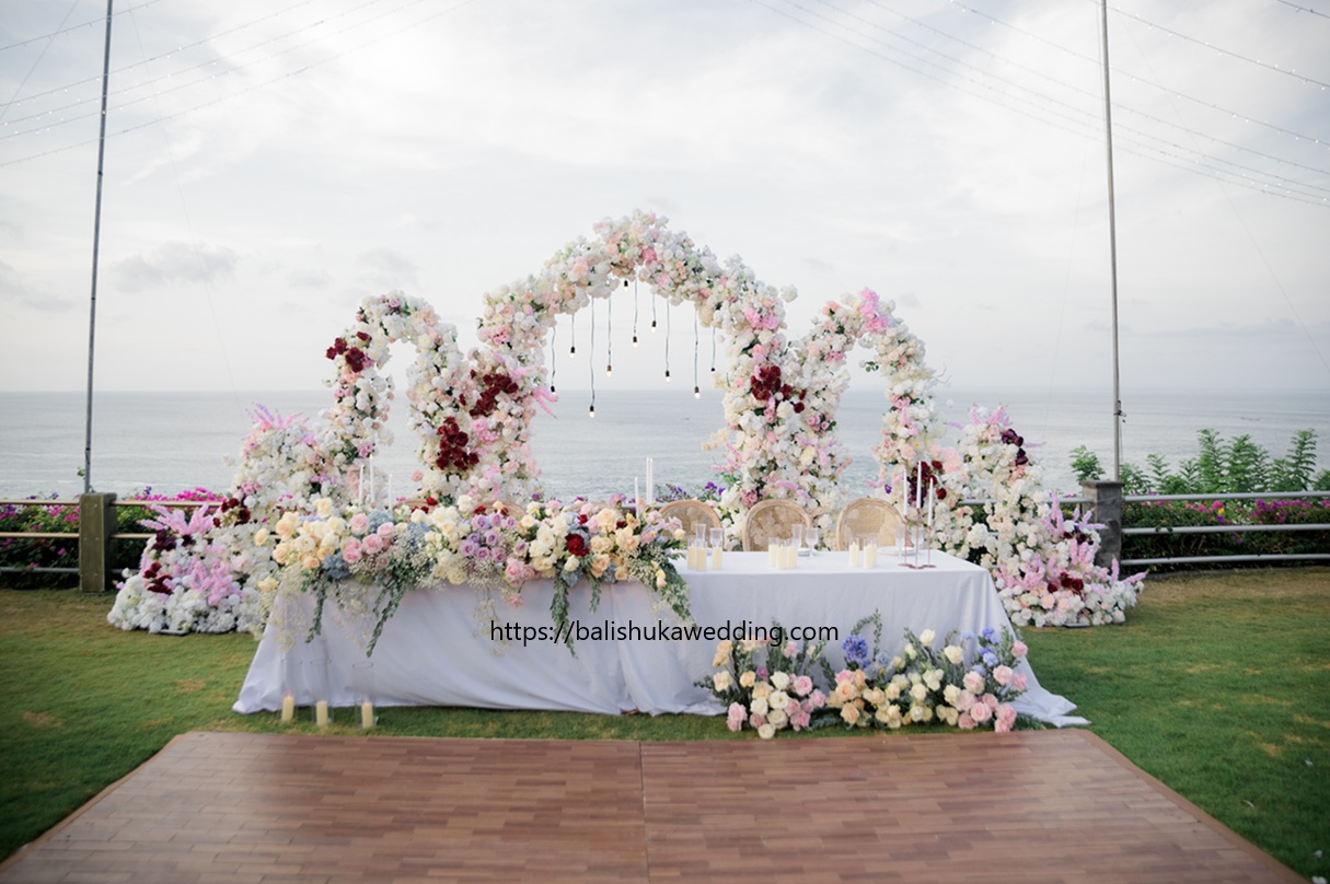 Bali Wedding packages villas allow you bring your own flower decoration or just ask your Bali Wedding planner on all inclusive package as comparison. You may choose the existing wedding decoration or tailored as you wish. Bali wedding packages hotel and chapel do not allow the customer to bring decoration from outside unless we pay an entrance fee requested by hotel or chapel.
