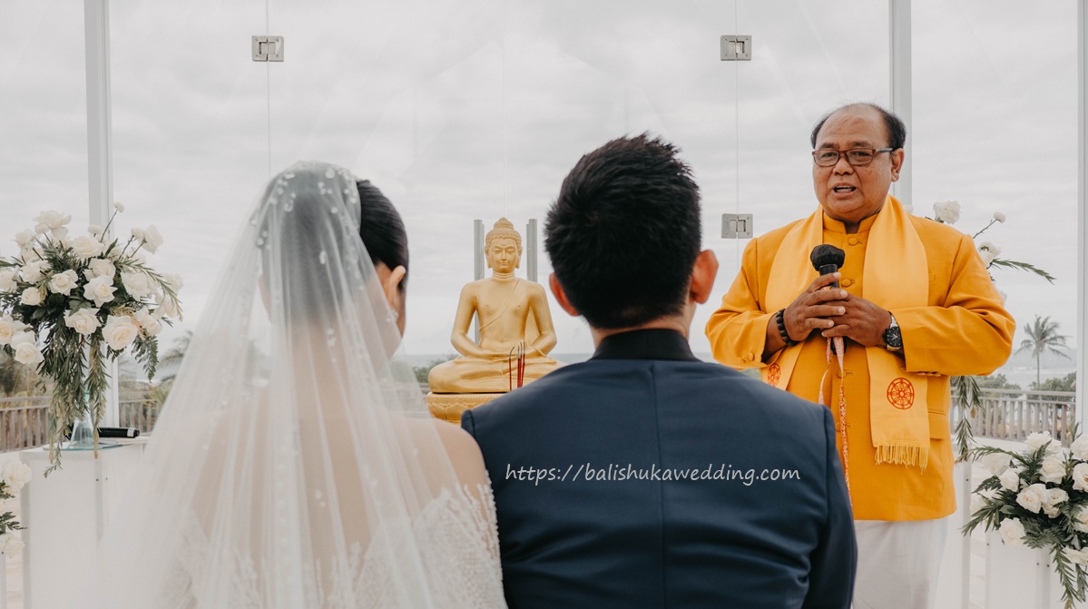 Buddhist Wedding Bali Ceremony can be carried out in Buddhist Temple or other respective location. Buddhist Wedding Ceremony outside vihara or Buddhist Temple is led by a “Romo Pandita”.