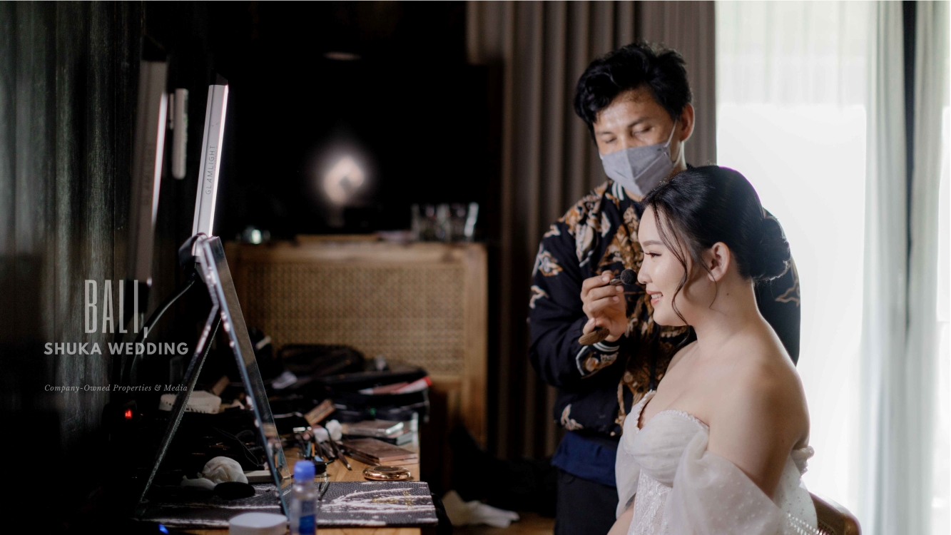 Southeast Asians tend to have darker skin than Westerners or East Asians such as Japanese, Koreans and Chinese who have a pale white skin tone. So you really should measure your skin tone. Is it cool, neutral or warm? So that we can choose the shade in the make-up as well as the ambience and style of clothes for the wedding.