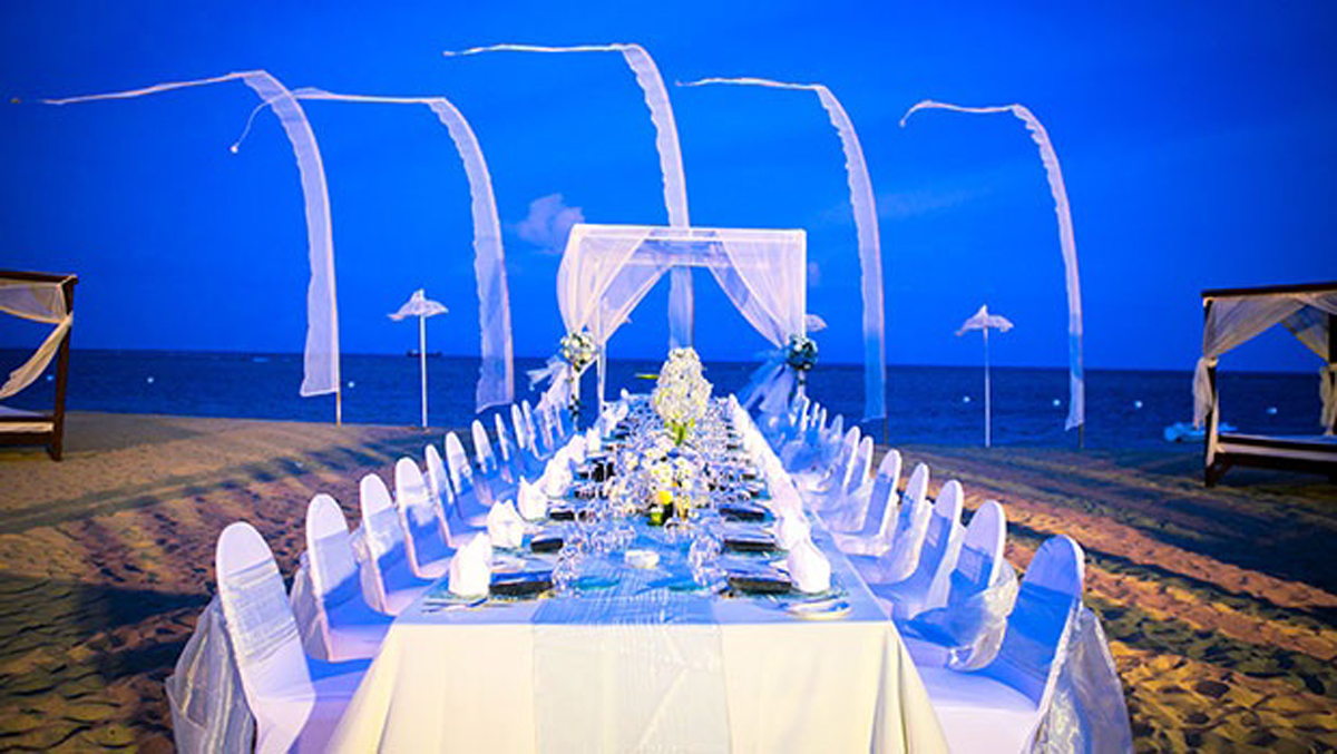 Grand Mirage Beach wedding venue is located in Tanjung Benoa in front of the Grand Mirage Hotel, it is a white sandy beach which is a great place for your beach wedding venue either for an intimate wedding celebration for wedding for two or even a big wedding party. The access to the beach is through the Grand Mirage Resort.