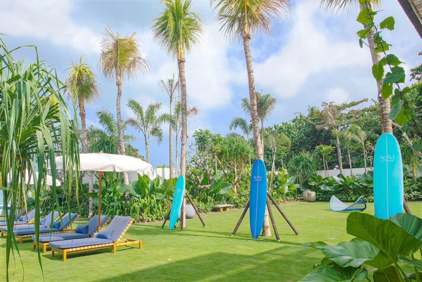 Living areas: Indoor living area; entertainment and dining terrace; pool balé; rooftop terraces; media room; outdoor lounge. Bedroom: 12 adults (6 ensuite bedrooms: 3 with king-size beds and 3 with twin beds convertible to king). Extra beds may be set up on guest request at additional charge. Entertainment: Noku Beach House Radio; tablet controlled integrated Void sound system; movie projector in the media room; Satellite TV; Apple TV. For Families: pool toys; board games; cooking classes and Balinese traditional craft lessons. Sports: swimming pool, surf; and unlimited WiFi and the flawless service of its team of staff.