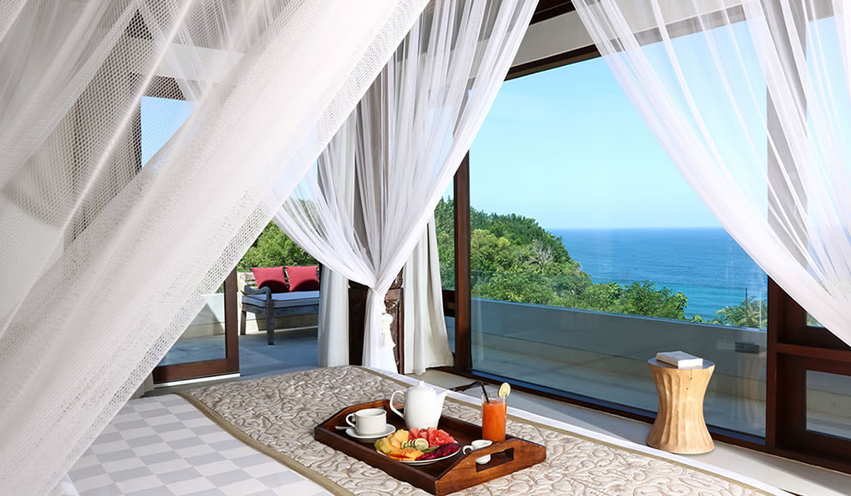 Bali Villa wedding at Surga villa which is located on the clifftop above white sandy of Melasti beach in Bukit Peninsula area. Villa Surga is comprised of two seperate villas; Villa Surga One with 6 bedrooms, and Villa Surga Two with 7 bedrooms. Each includes private sea or jungle facing balconies and complete amenity.