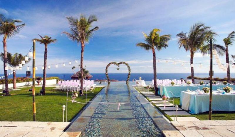 The Surga Villa Estate has beach access down cliff side stairs, an ocean view observation deck and also an infinity pool. The villa offers stunning 360-degree sunset views from the edge of their limestone clifftop gardens. These facts make Villa Surga one of the best Bali villas wedding, a perfect venue to holds weddings. There are some differents event layout options depending on the event size, and no matter which layout you choose, the wedding will take place as the sun sets behind you over the magnificent Indian Ocean.