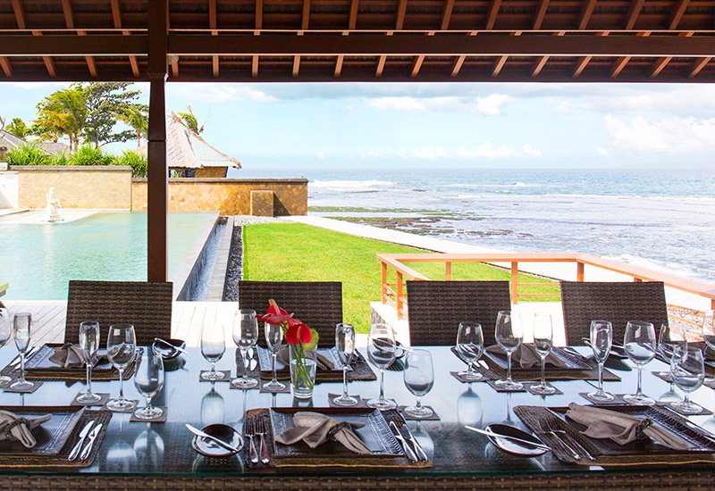 Villa Bayu Gita has 6 bedrooms, including two huge master suites complete with individual plunge pools and lounge areas. One of villa other features is an infinity swimming pool. The stunning beachfront location and manicured lawn immediately in front of the ocean make it a superb choice of Bali villa wedding to hosting wedding ceremony and reception. Villa Bayu Gita customized wedding package offers you to stay in 6 bedrooms villa for 3 nights, 5 nights stay. This villa can accomodate maximum 50 seated guest.