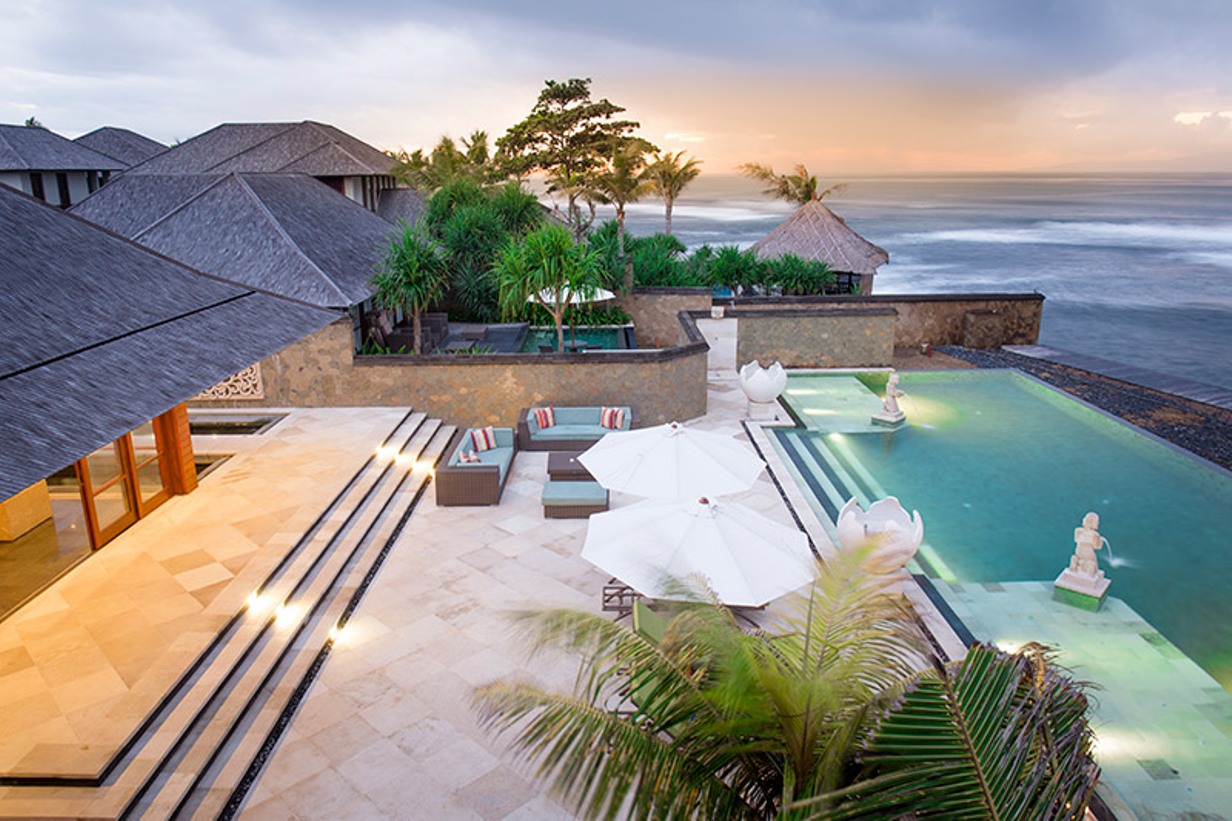 Villa Bayu Gita offers view of black sands of Pabean beach and view across the Badung Straits all the way to Nusa Lembongan. This villa has direct beachfront access, and with the area that is ideal for surfing, you can freely go surfing. This villa is located in Sanur-Ketewel, Bali.