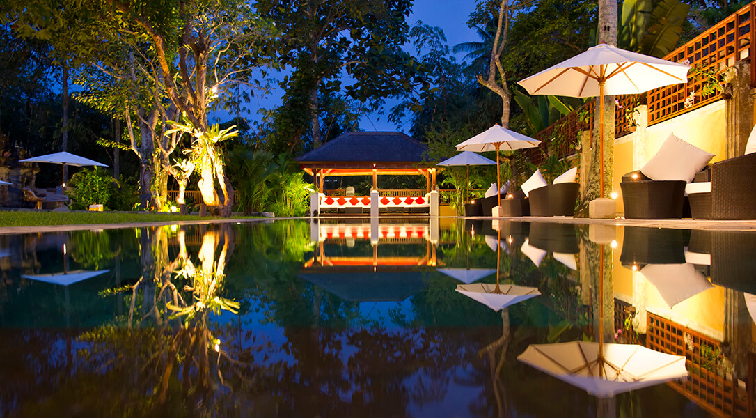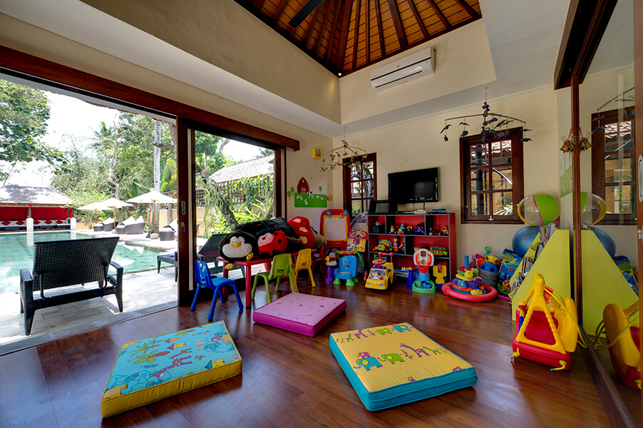 Villa San Located in Bali's spiritual heart of Ubud, Villa San offers unique facilities such as loft studio that can be used for painting, or a telescope for star-gazing from the function room at night. This villa six-bedroom luxury villa sets across lush gardens that centre arround 25m lap pool. During your stay in this villa, you can explore the surrounding area. You can visit Ubud's Royal Palace just 10 minute-drive away where cultural performances are held nightly. The surrounding small villages in Ubud are rich in culture and art. Many villages focus on a specific craft such as stone carving, batik painting or woodworking. You can visit, watch and take classes to learn about these crafts. If your families want to bring children, then this villa is perfect for you as this villa provides children's playrom near the pool.