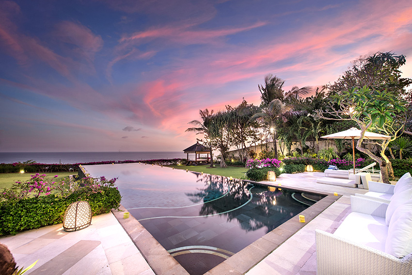 Villa Saujana has a 20-metre infinity pool in the middle of the garden. This tropical clifftop garden offers an unobstructed views of the ocean. With the stunning clifftop location and beautiful garden, Villa Saujana provides a perfect venue for wedding ceremony and wedding reception. Villa Saujana customized wedding package offers you to stay in 6 bedrooms villa for 3 nights, 5 nights and 7 nights stay. This villa can accomodate for up to 80 seated guests or 140 standing guests.