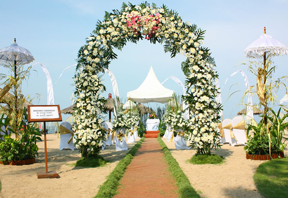 Intimate wedding package for 30 persons at Bali Tropic Beach Resort include two night stay in deluxe bungalow for bridegroom, wedding decoration, and photo video services. For any other services you may need can be added on using Customize package tools