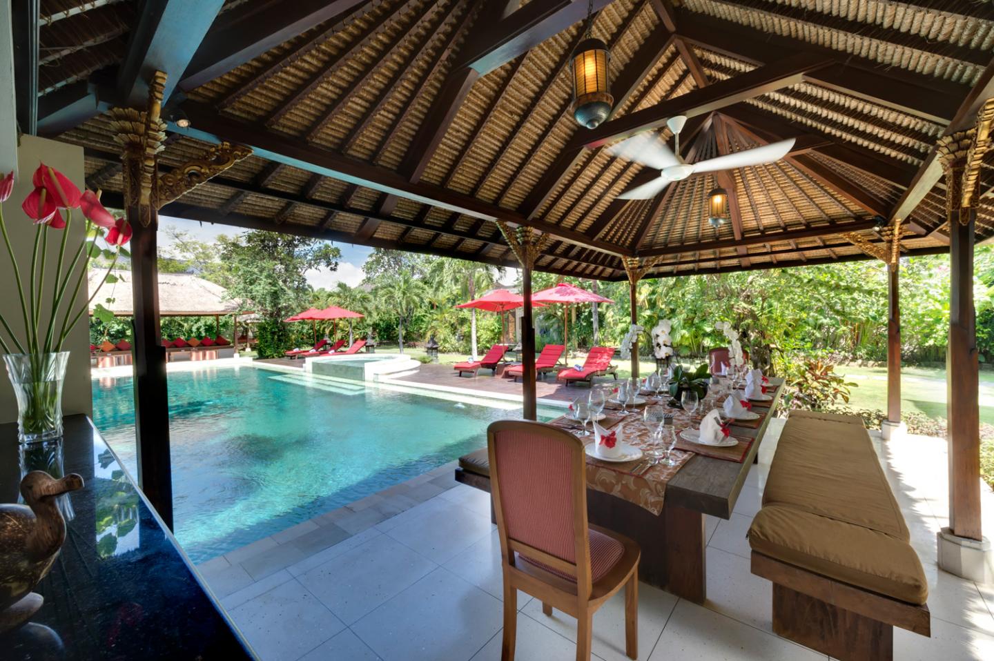 This customized wedding package already includes three nights stay in 5+1 bedrooms villa for up to 10 adults, 2 children. Kalimaya I Villa can accomodate for up to 50 seated guests, and 75 standing guests. Add on any additional services by using our Customize Tools. Let us do the work and you can focus on celebrating your wedding party with your guests. (Click here to learn more about How to Use Our Customize Tool)