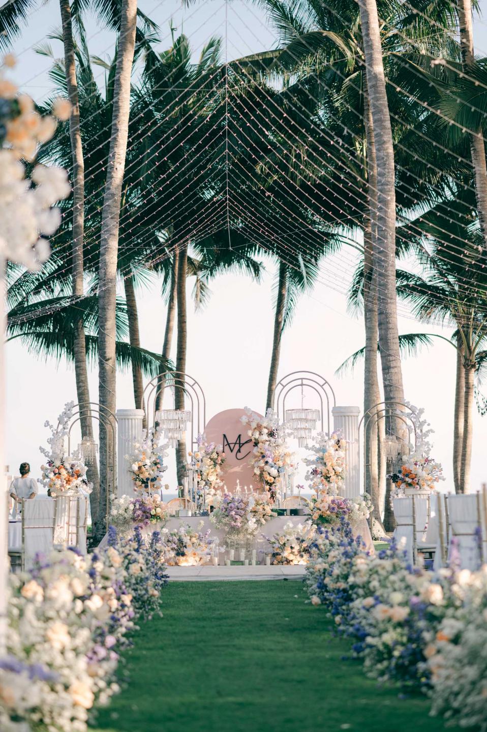 - Ceremony Decoration includes Flower Arch, Altar Table, Flower Centerpieces, Standing Flowers, Aisle Flower arrangements, Flower Shower petals, and Welcome Board.
