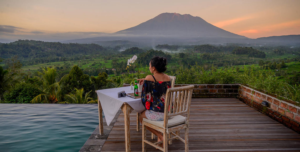 Escape from hustle bustle of the city to east Bali and say I do at Patal Kikian in a high hill of Sidement with stunning rice field panorama and Mount Agung. This intimate wedding package is designed for 12 persons include stay accommodation at six bedroom villa, MUA for bride, wedding decoration, dinner reception.