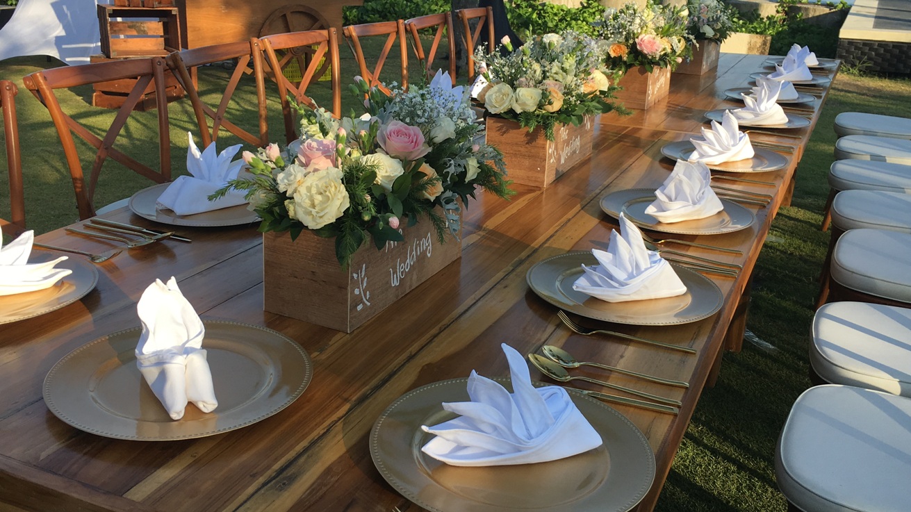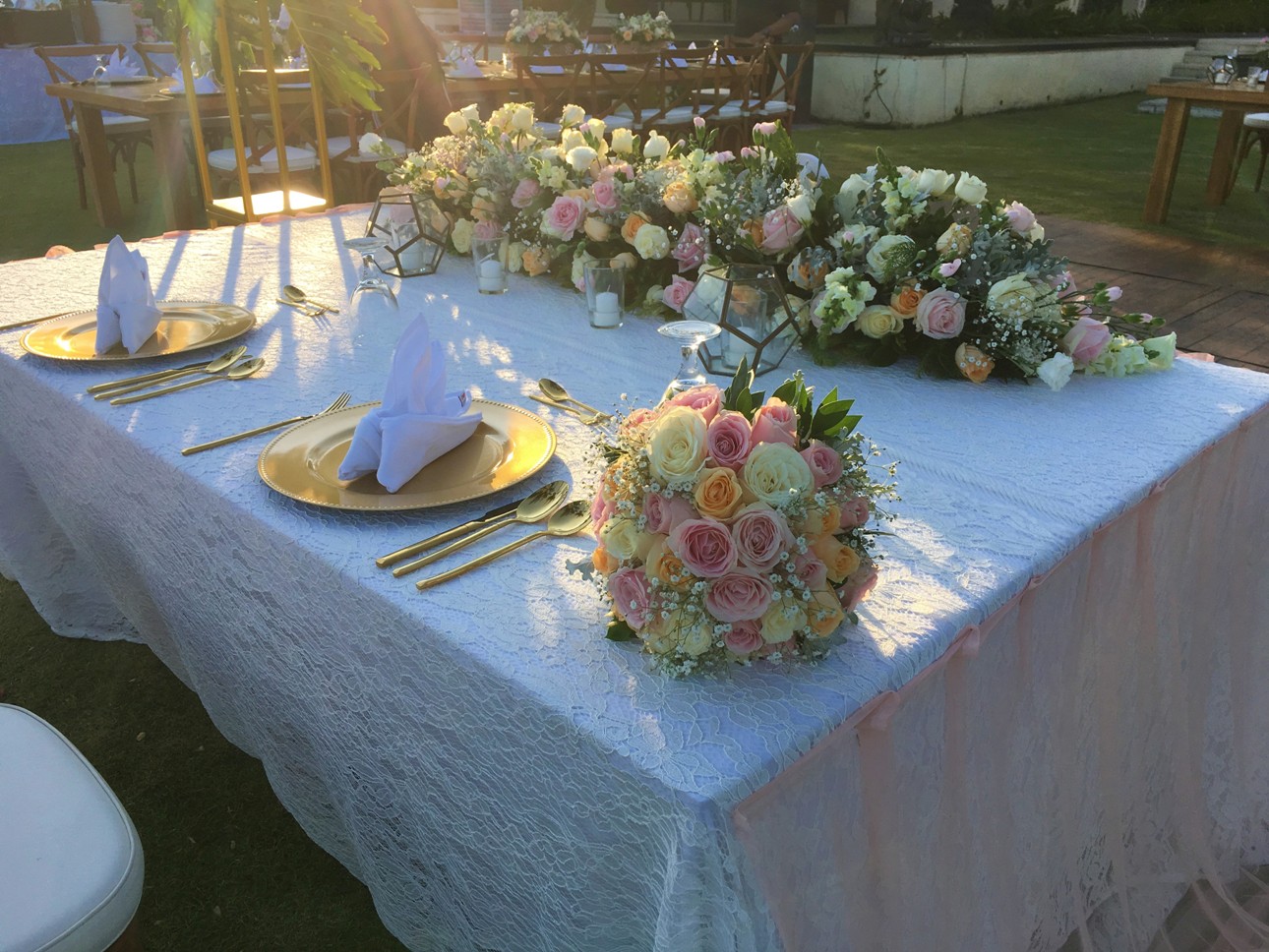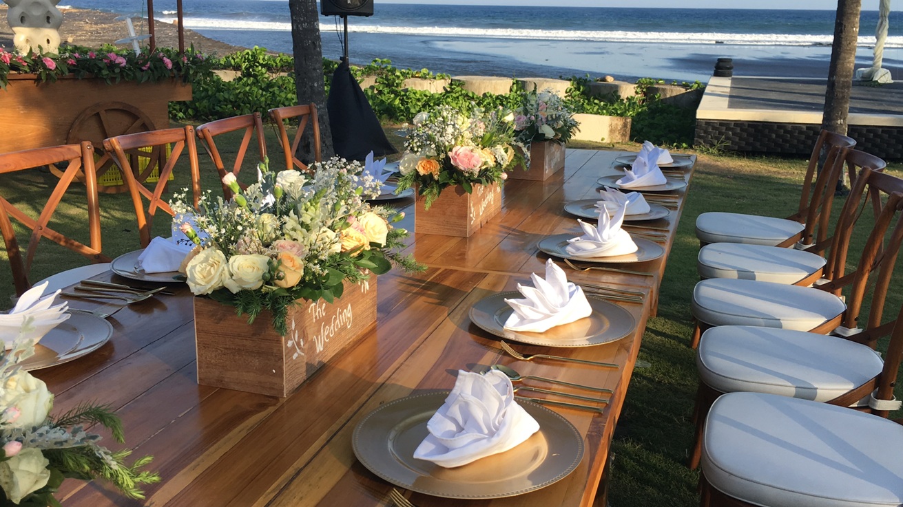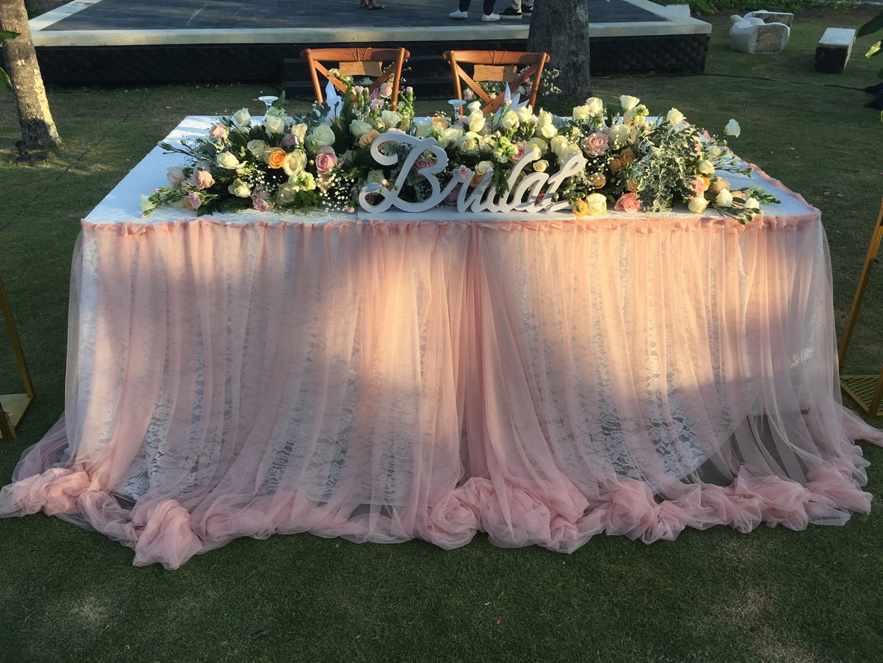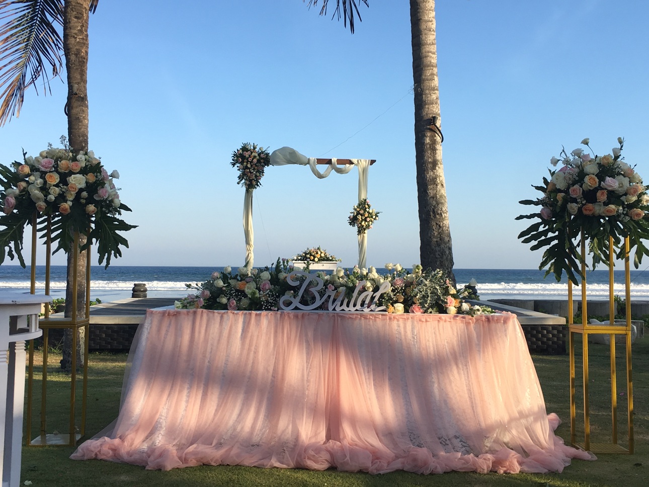 - Ceremony decoration include : flower arch, altar table and flower centerpiece, flower aisle, flower shower, standing flowers, and welcome board.