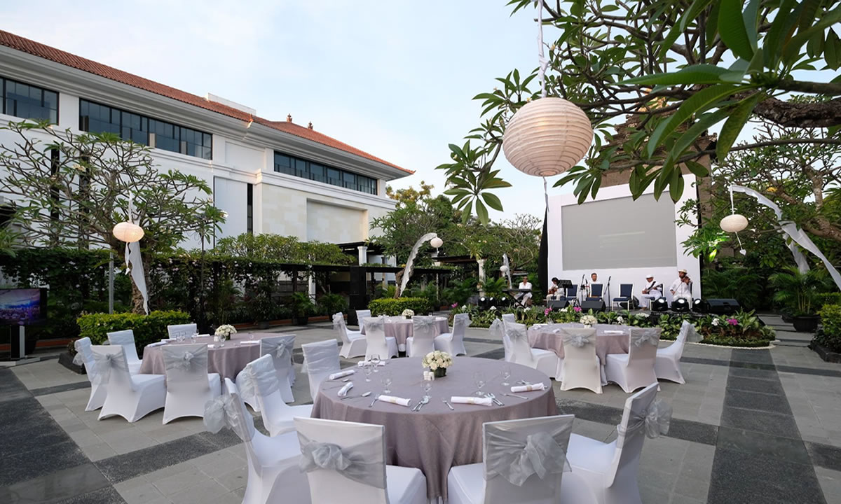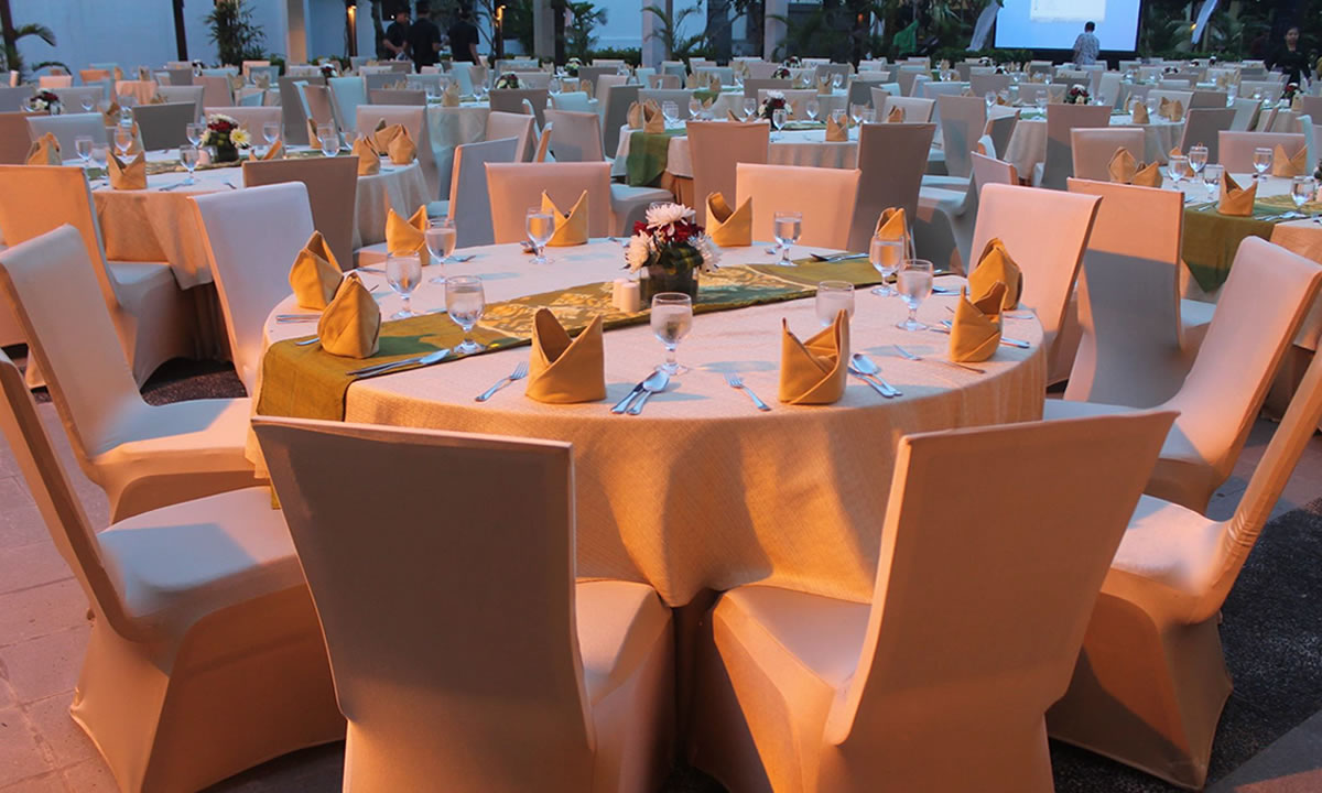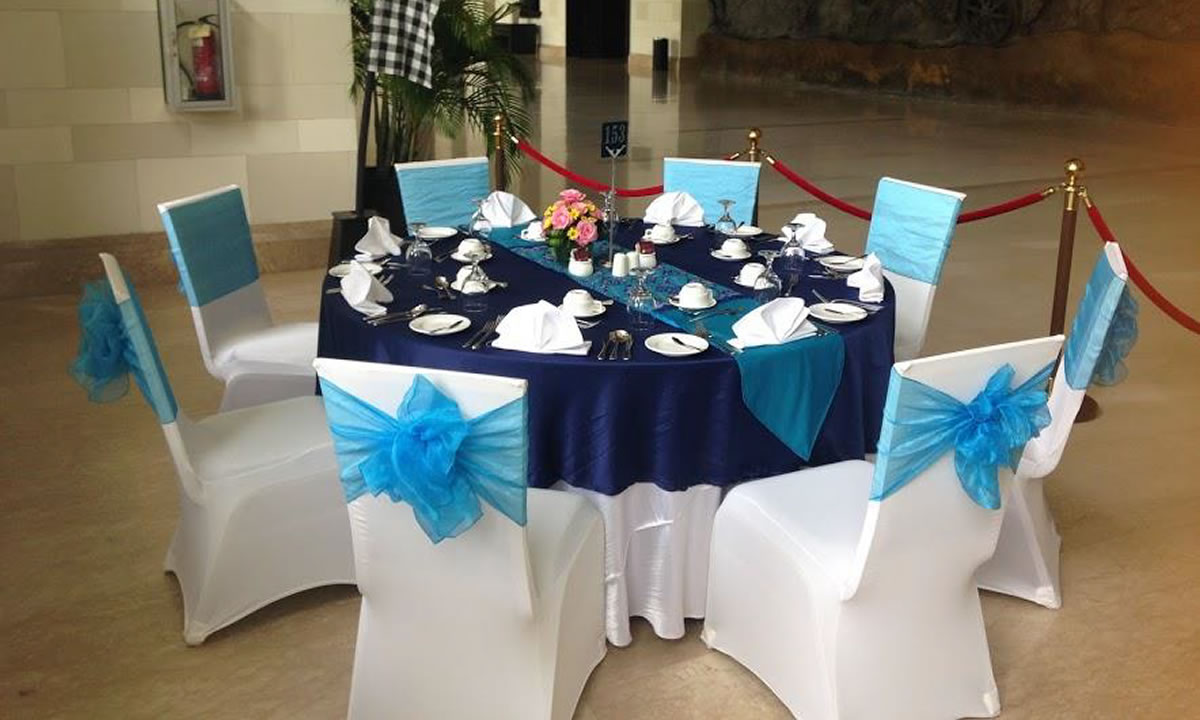 AB offers many type of cuisines start from Balinese food , Indonesian food , east meet West food .Apart from the food they also offers beverages package which mostly already packaged in one .Themed color table set up in various option also available but with banquet chairs options.for other chairs like rustic chairs, tiffany chairs should be provided by your wedding organizer or other vendor.